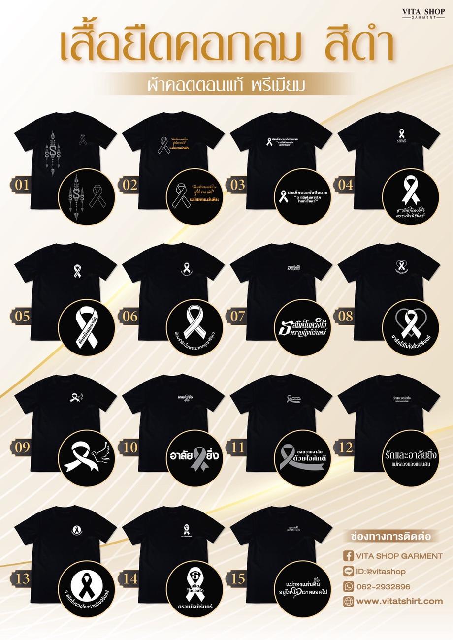 ออกแบบลายพิเศษเรียบง่าย เช่น สัญลักษณ์รำลึก ใช้สีเทา–ขาว สื่อถึงความเคารพและความอ่อนน้อม สามารถสกรีนโลโก้เล็กบริเวณหน้าอก สำหรับหน่วยงาน องค์กร บริษัท