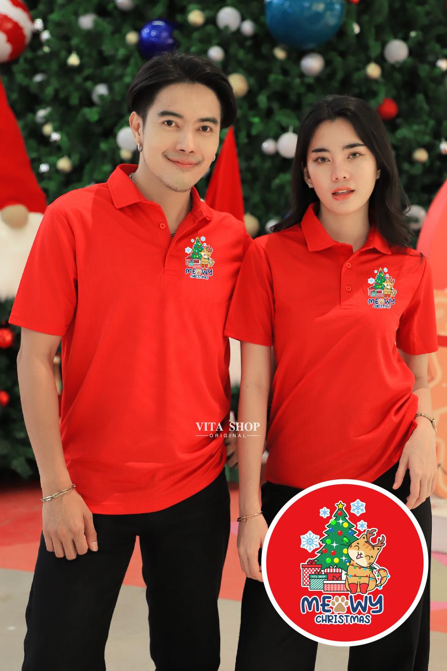 เสื้อโปโลคริสต์มาสเสื้อปีใหม่ ลาย01 สีแดง Meawy Christmas เสื้อทีม เสื้อคู่ เสื้อครอบครัว