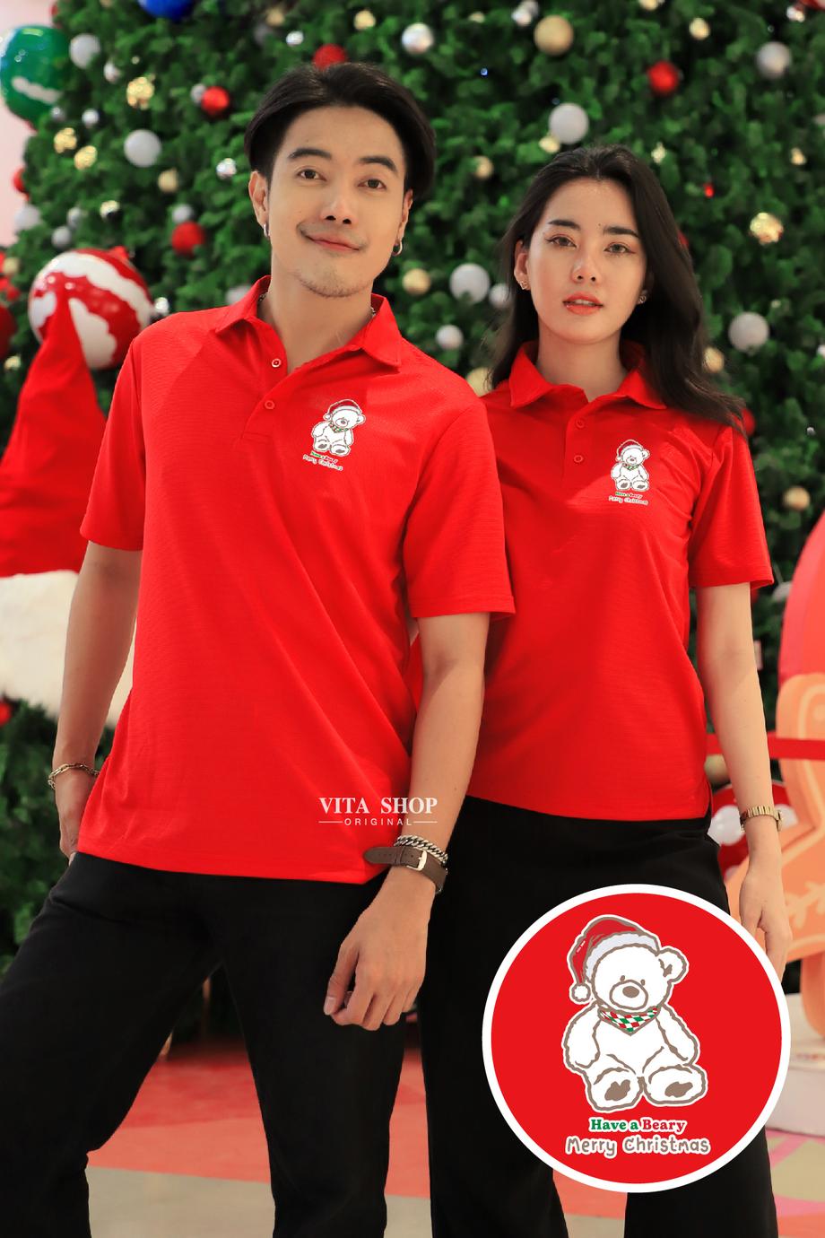 เสื้อโปโลคริสต์มาสเสื้อปีใหม่ ลาย09 สีแดง Merry Christmas เสื้อทีม เสื้อคู่ เสื้อครอบครัว